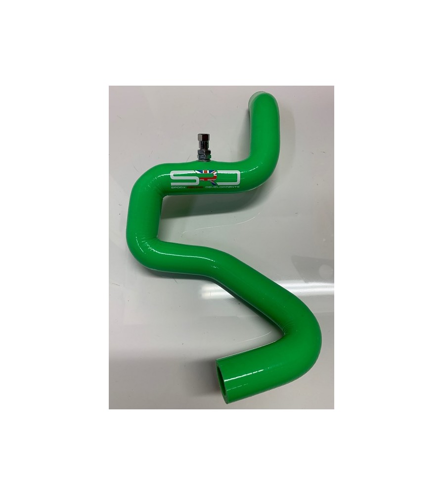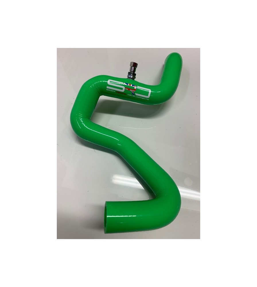 Spoox Racing Developments silicone coolant hose replaces the hose that runs from the heater matrix pipe on the bulkhead to the rear water distribution housing on the rear of the engine block. This pipe also retains the original coolant system bleed screw.