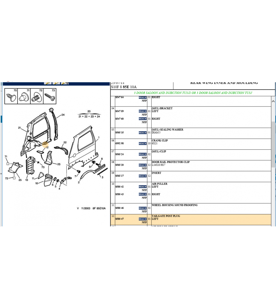 Genuine Peugeot 106 Nearside Rear Tailgate Plug - 8580.47