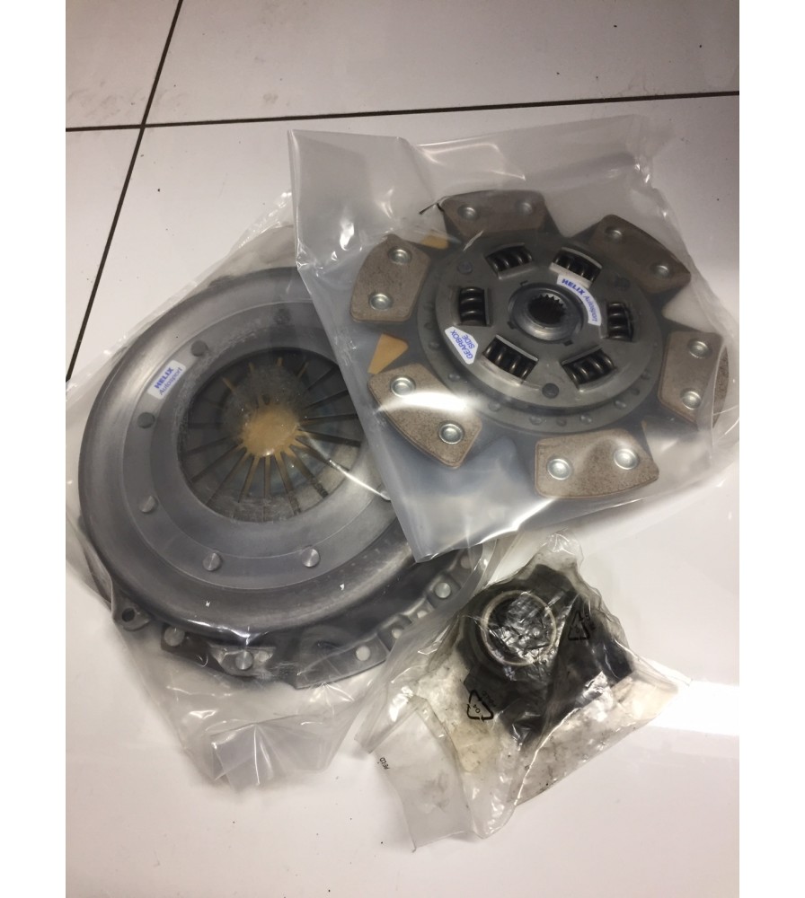 This kit contains a 215mm helix uprated clutch cover, a helix 6 paddle cerametallic sprung centered 215mm friction plate and a Genuine OE Peugeot BE3 release bearing.