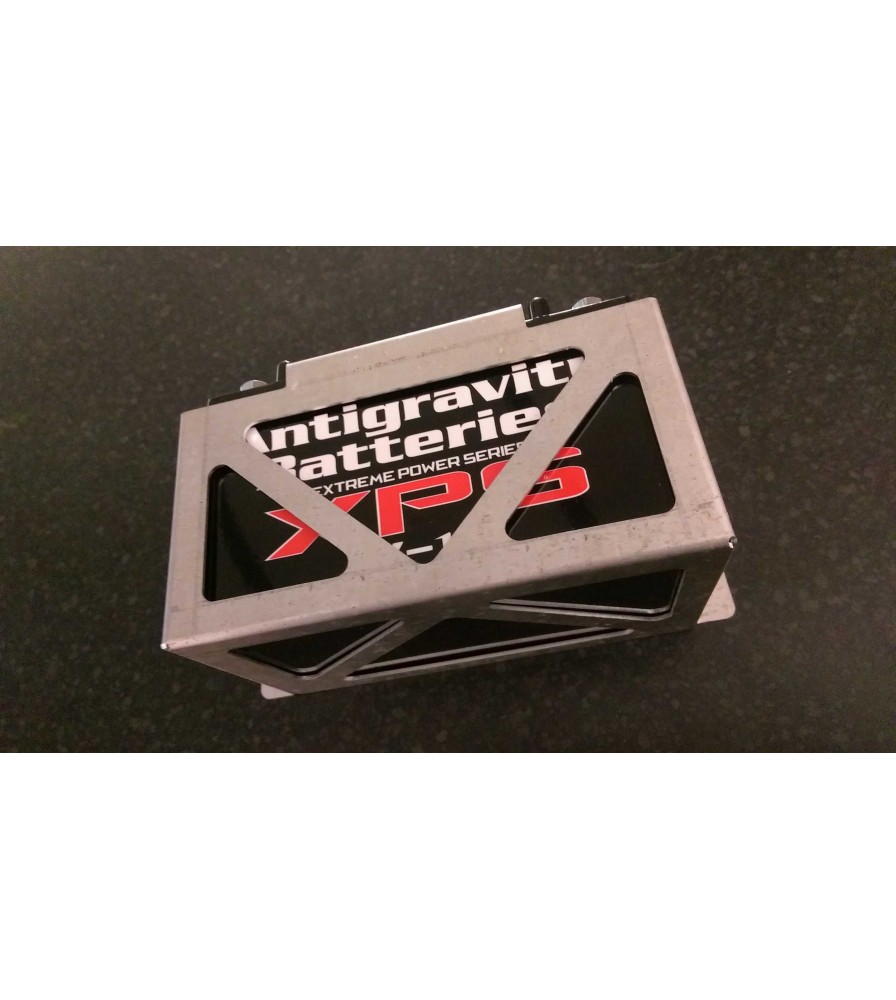 Spoox Motorsport alloy battery securing tray for Antigravity V-10 battery.