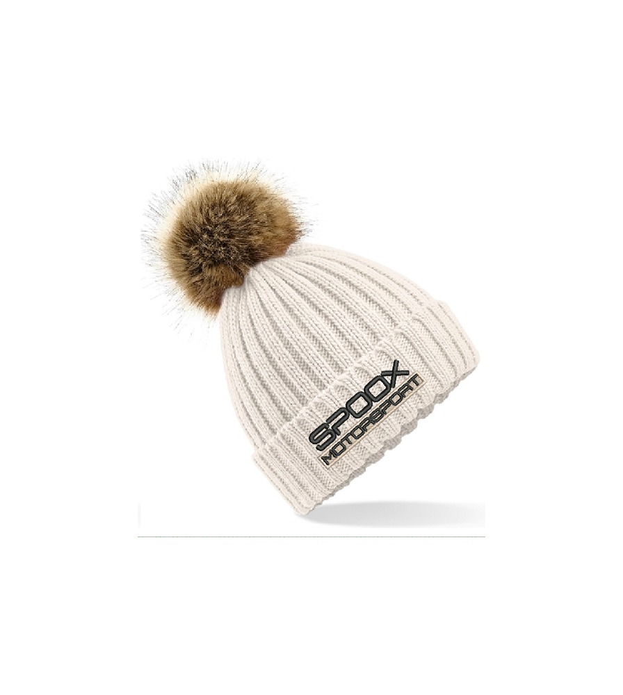 Team Spoox Motorsport Cream Pom Pom Beanie Hat