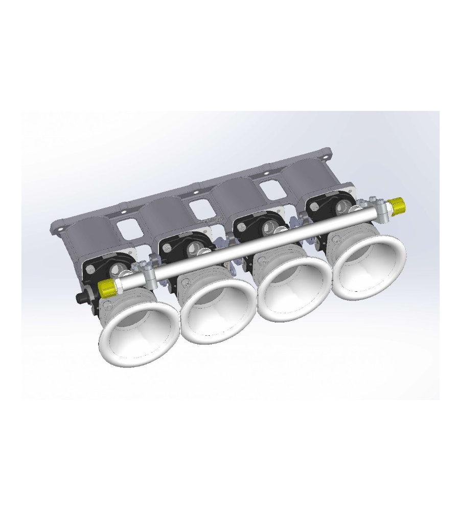 ITB throttle body kit from Jenvey Dynamics includes four SF48 tapered throttle bodies (45mm butterfly), an inlet manifold, fuel rail and four 40mm long airhorns.