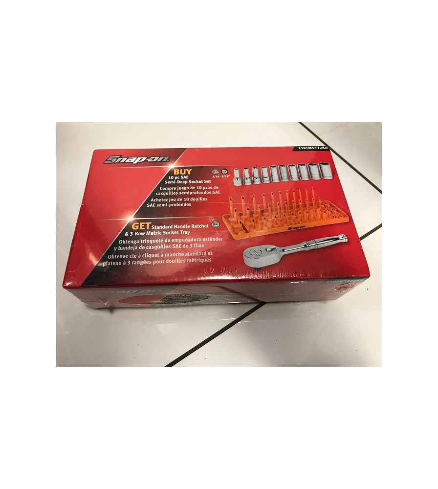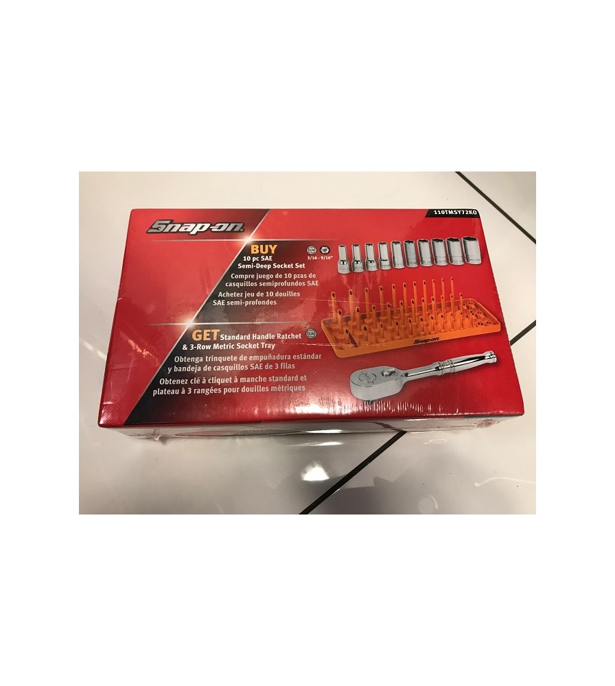 Snap On 10 Piece Semi Deep Socket Set & Standard Handle Ratchet - 110TMSY72KO