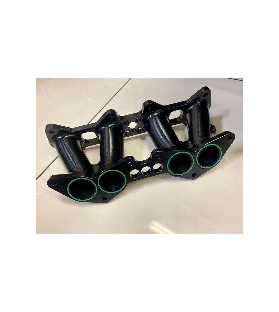 Billet alloy throttle body inlet manifold for fitting Jenvey, etc. DCOE throttle bodies to 8 valve Saxo and 106's.