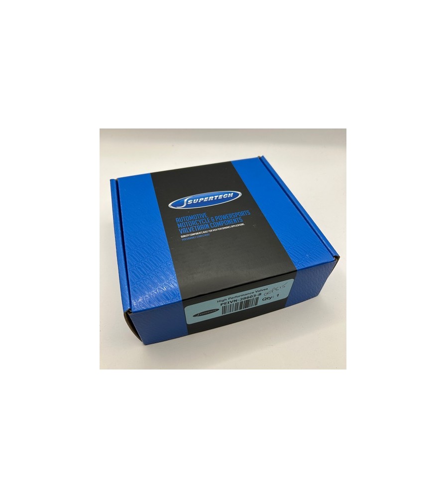 Set of 8 Supertech black nitrided stainless steel one-piece stainless steel inlet valves suitable for the 1.6 16v TU5JP4 engine found in the Citroen C2 VTS.